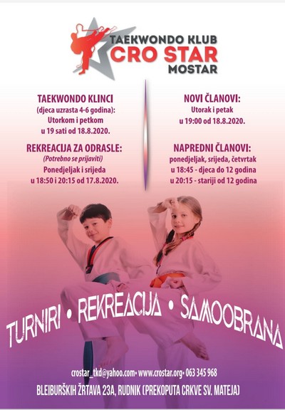 Molimo sve naše članove i njihove roditelje, koji nemaju Facebook i ne prate obavijesti u našoj FB grupi da mi se jave, jer krećemo s treninzima (sa svim grupama, taekwondo i rekreacija za odrasle) od ponedjeljka 1.6.2020. Grupe ćemo adaptirati, kao i satnicu, kako bismo se pridržavali svih propisa. Naše obje dvorane, sva oprema i popratni prostor su propisno očišćeni i sve što je propisano je nabavljeno i pripremljeno. Radujemo se ponovnim treninzima i susretu sa svima vama :-)